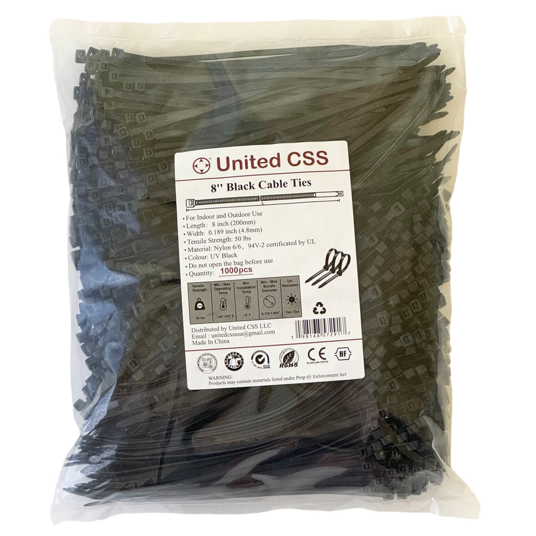 Cable Zip Ties 8inch 50lbs Black 1,000pc