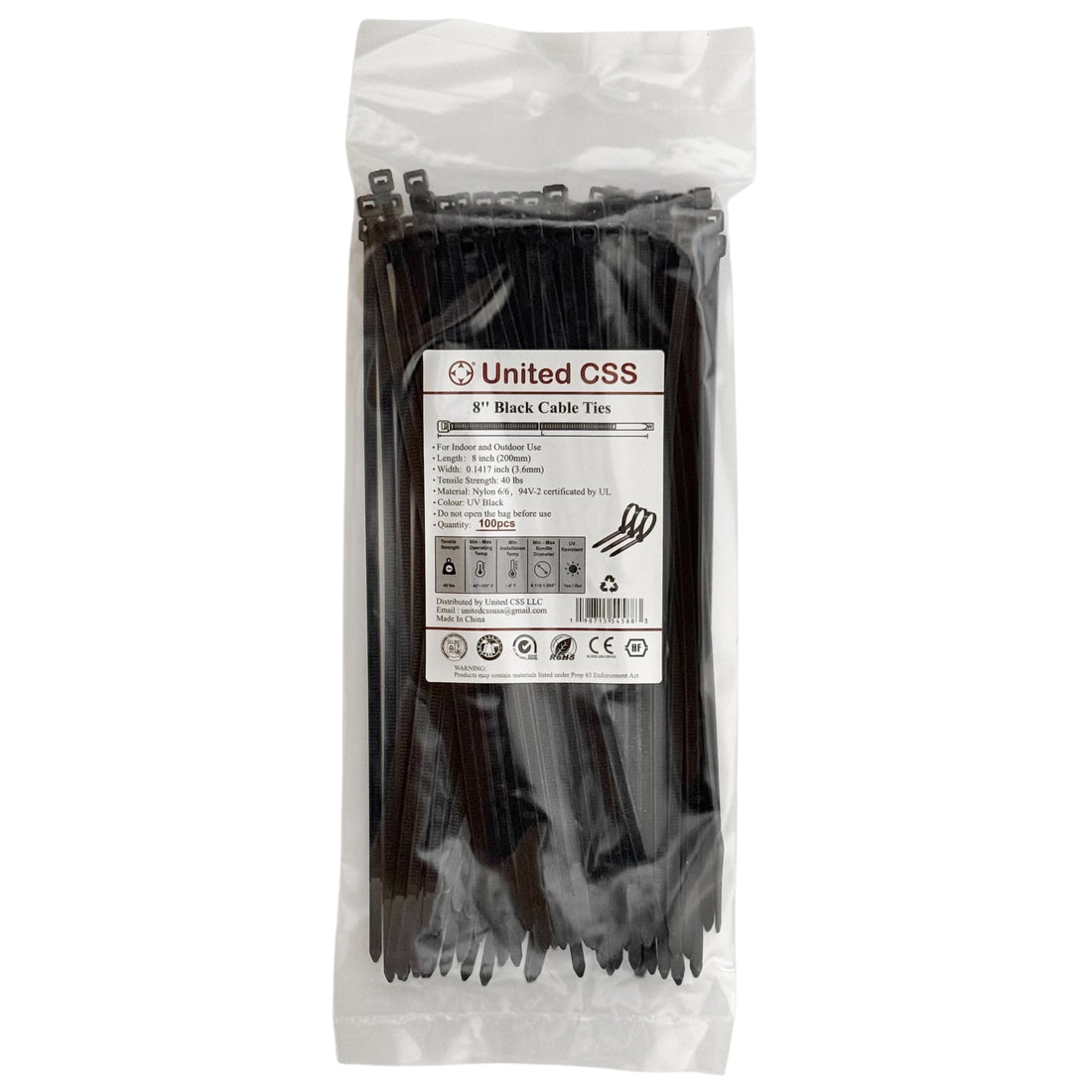 Cable Zip Ties 8inch 40lbs Black 100pc