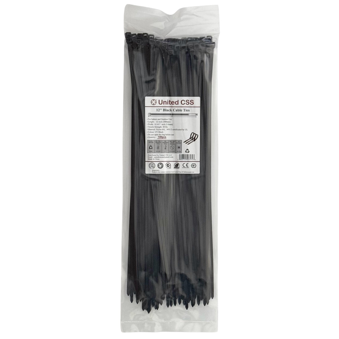Cable Zip Ties 12inch 40lbs Black 100pc